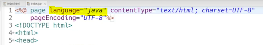 - language : 스트립트 언어 (생략 가능, 기본으로 자바이기 때문에)