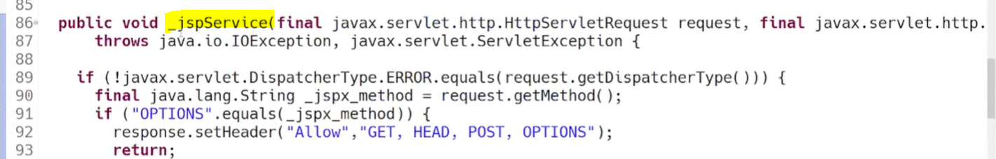 - _jspService() 메소드의 로컬(지역) 변수와 자바 코드를 작성할 때 사용