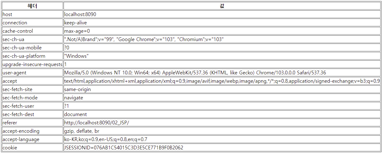 - request.getHeaderNames() : 헤더 이름 가져오는 메소드
