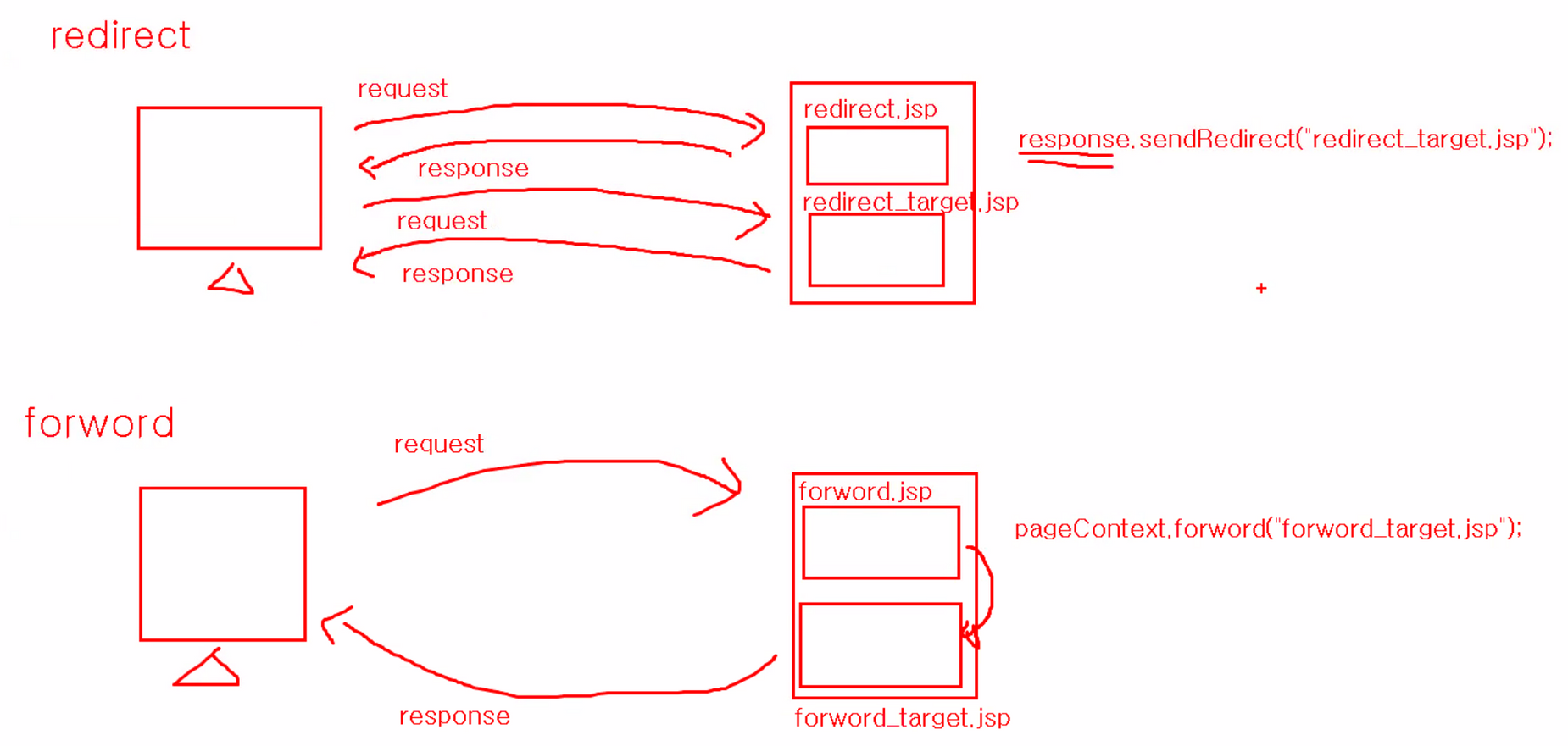 - 현재 페이지의 요청과 응답 정보를 다른 페이지로 넘기기 때문에 요청 정보와 응답 정보가 유지된다.