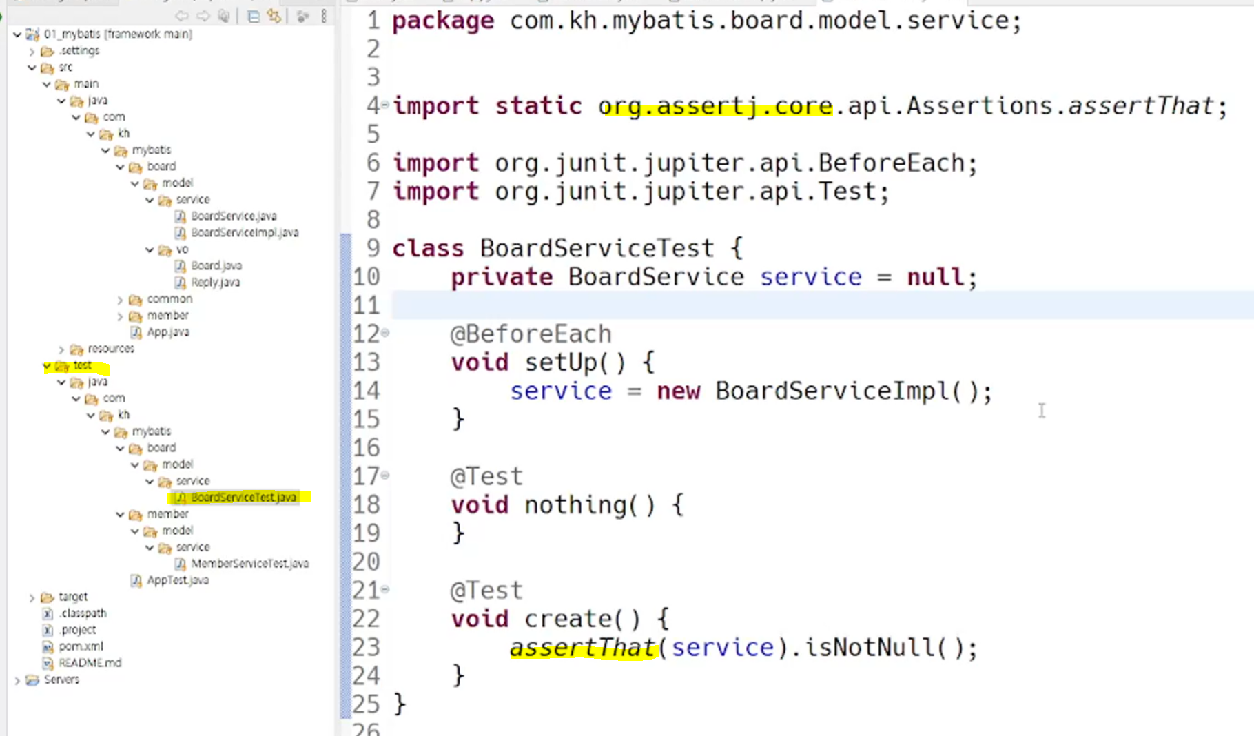 서비스 테스트할꺼기 때문에 서비스 인터페이스와 인터페이스 구현하는 클래스 만들고