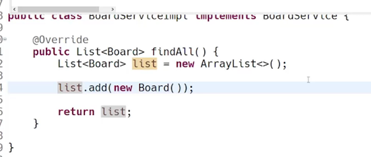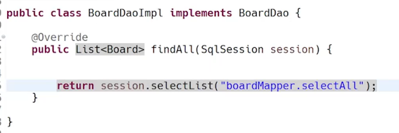 4. dao → 5. mapper.xml → 6. daoImpl 클래스 return 타입 작성