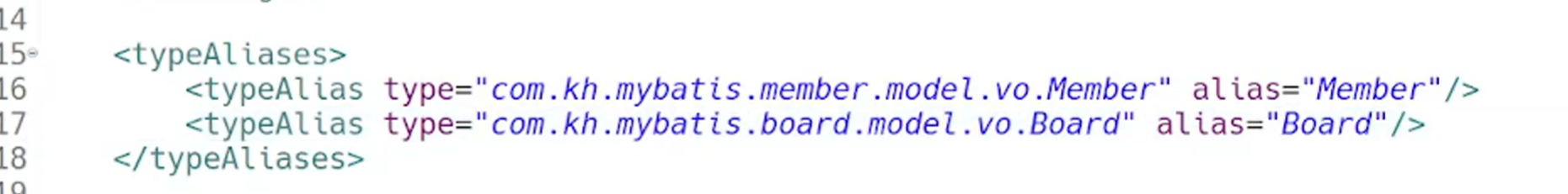 4) mybatis-config.xml의 typeAliases에 resultType 별칭으로 지정