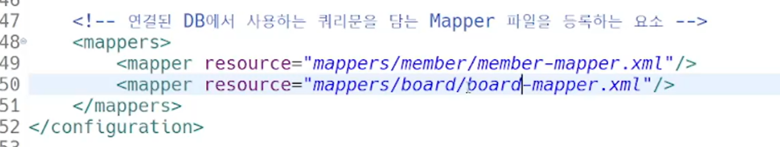 - 기능별로 쿼리문 작성해서 보관하기위해 mapper 따로 만든다